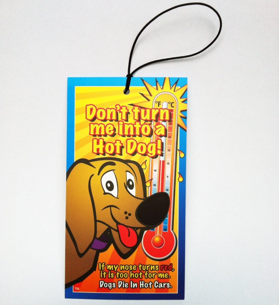 DON'T LET YOUR PETS BECOME A STATISTIC! Knowledge is power! Produced in the UK for and used by various Pet Health organisations including the Canine Health Foundation in the US. The Hot Dog Alert Tag is here to help! Leave the tag hanging from your rear view mirror. When the temperature inside the car gets hot the dog's nose will become red. This indicates that no pet should be left inside the car REGARDLESS of whether or not a window remains somewhat open! This is not a substitute for owners common sense!